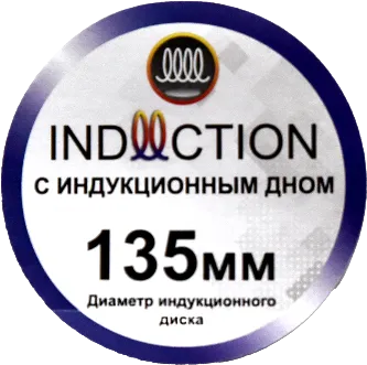 Данный стикер содержит информацию о диаметре индукционного дна и сигнализирует о том, что посуда подходит для индукционных плит!